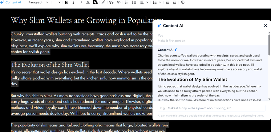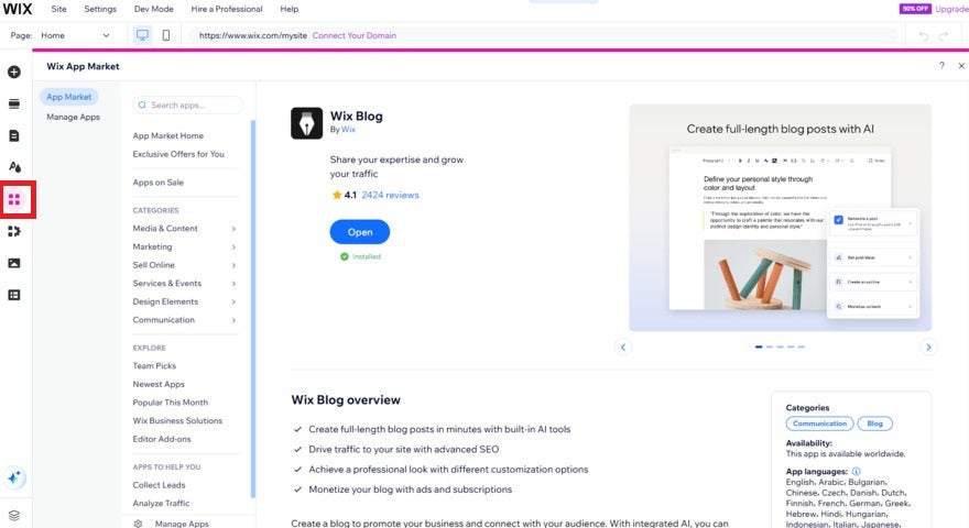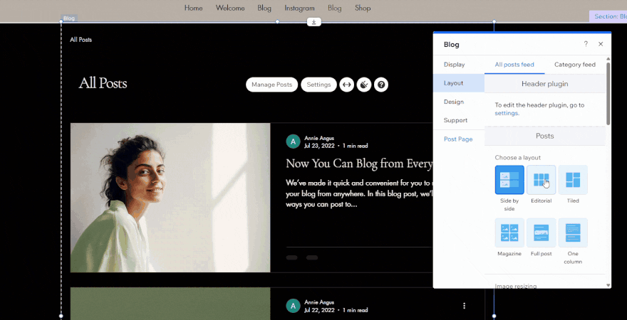 Home » Website Builders » How To Start a Blog With Wix (2026 Guide) How To Start a Blog With Wix (2026 Guide) We may receive a commission from our partners if you click on a link and purchase a product or service on their website. Learn more Written by Annie Angus Updated on August 27, 2025 Comments: 0 On this page Cost of Starting a Wix Blog Accessing Wix's Blogging Platform Designing Your Blog Wix's Writing Support Wix Blog Monetization Tips for a Great Wix Blog Summary Our most recent 2025 website builder research highlighted Wix as the best all-in-one solution for building, so it’s no surprise that it also has outstanding blogging tools. Still, after using WIx myself, I know it can be a little overwhelming to master.I’ve got you covered. My Wix blogging platform review shows you how to start a blog with Wix, covering all-important considerations, such as AI writing tools, blog design features, and monetization opportunities. How Much Does Starting a Wix Blog Cost? Wix has a free-forever plan which allows you to start a blog without paying a penny. The free plan is a great way to test out Wix’s blogging platform and comes with plenty of SEO, blog management, and analytics for successful blogging.However, there are notable limitations of the free plan to be aware of:500MB of storage and 1GB of bandwidthWix domain nameWix ads on your site 🤔Should I blog on Wix’s free plan? Wix’s free plan is good for personal blogs, but if you’re trying to build trust and brand awareness, I recommend upgrading to the Light plan. This removes ads, upgrades your storage, gives you marketing tools to grow your blog, and lets you connect a custom domain to your site.If you choose to upgrade, Wix’s pricing plans range from $17 to $159 per month, when billed annually. The $17-per-month Light plan is ideal for most blogs. However, if you want to accept donations or link to products you’re selling in your blog posts, you’ll need the $29-per-month Core plan. Wix's Plans Free ($0) – For testing Wix Light ($17) – For portfolios and personal sites Core ($29) – For small and growing online stores Business ($36) – For established businesses Business Elite ($159) – For large online stores with complex needs Where Can You Find Wix's Blogging Platform? To access Wix’s blogging platform, you’ll need the Wix Blog app. While some blogging templates automatically install this app to your site, you can manually download from within the editor of any template.To download Wix Blog, select the “Add Apps” icon from the left sidebar. Type “Wix Blog” into the search bar and hit install.Wix’s app market icon is a pink grid of squares in the editor’s sidebar. Source: Website Builder ExpertOnce you have the app installed, enter your blog page from within Wix’s editor by selecting “Pages” from the left sidebar and navigating to “Blog Pages.” How To Design Your Wix Blog I completed my initial Wix setup with the help of its AI website builder. After asking important questions – such as my blog’s name, the type of content I’ll share, and my blog’s unique selling point – I was taken to a blog setup checklist, which gave me two options to design my site:#1. Generate a Design with AIWix’s AI website builder opens up an AI chatbot which generates a site brief and a website preview based on the information that I inputted during signup.If I wasn’t happy with the design, I could tweak the site structure, design, theme, and layout details of the brief and regenerate.#2. Pick a TemplateAlternatively, you can select from one of Wix’s 2,000+ templates. After selecting this route, I was pleased that Wix had used my signup information to recommend templates fit for my fashion blog.Wix’s recommended templates helped me know what to look for in a fashion blogging template. Source: Website Builder ExpertIf the recommendations don’t take your fancy, Wix has a “Blog” tab at the top of its template library, where you can filter by blog types such as “Personal,” “News and Business,” “Food and Travel,” and “Sports and Wellness.” At my time of writing, there are 143 unique blogging templates to choose from, so you’re sure to find something you like.Editing Your Blog PageOnce you’re happy with your initial template, head into Wix’s editor to personalize it. While I could talk in depth about building a website with Wix, I’m going to focus on design elements in the blog pages for this article.The blog design controls are easily found by clicking anywhere on the page and selecting the white settings button.The blog settings pop up was organized with user-friendly tabs. Source: Website Builder ExpertWix gave me more control over the look and feel of my blog page than any other website builder I’ve tested. I could edit:The display: What shows on my post previews, such as author name, publish date, reading time, social sharing buttons, and various engagement metrics.The layout: How you want your post previews to be presented on the blog page. For example, I could show a single column, a grid of header images, or entire posts.The design: Change the colors and fonts of different elements, such as buttons and ratings. I could control my main post feed and any category feeds created.There were plenty of layouts I could experiment with to show my blog posts in the optimal way. Source: Website Builder ExpertCreating Individual Blog PostsIn the blog post editor, you’ll have standard text formatting controls, such as adding links, headings, indenting the page, changing font size and color, and adding bullet points and numbered lists.I was a little frustrated that I couldn’t change the background color of my individual blog posts in the editor like I could with Squarespace. Does Wix Help You Write Blog Content? If you’re not a wordsmith, don’t worry – Wix has plenty of AI tools to help you build your business blog.Planning Topics and OutlinesWix’s AI Topi